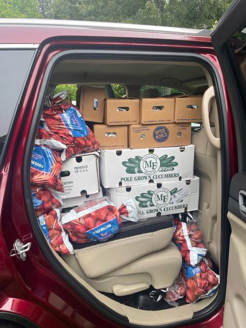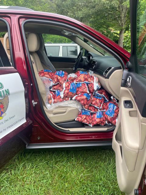 Last fall, Impact100 of Fannin County, an organization of women who pool their money to help nonprofits in our county, awarded Feed Fannin a grant for the purchase of a dedicated vehicle to transport loads of food, plants, soil, tools, etc. The used Jeep Grand Cherokee we acquired in May has so far been used to haul more than 11,000 lbs. of produce and canned goods. Thank you, Impact100!